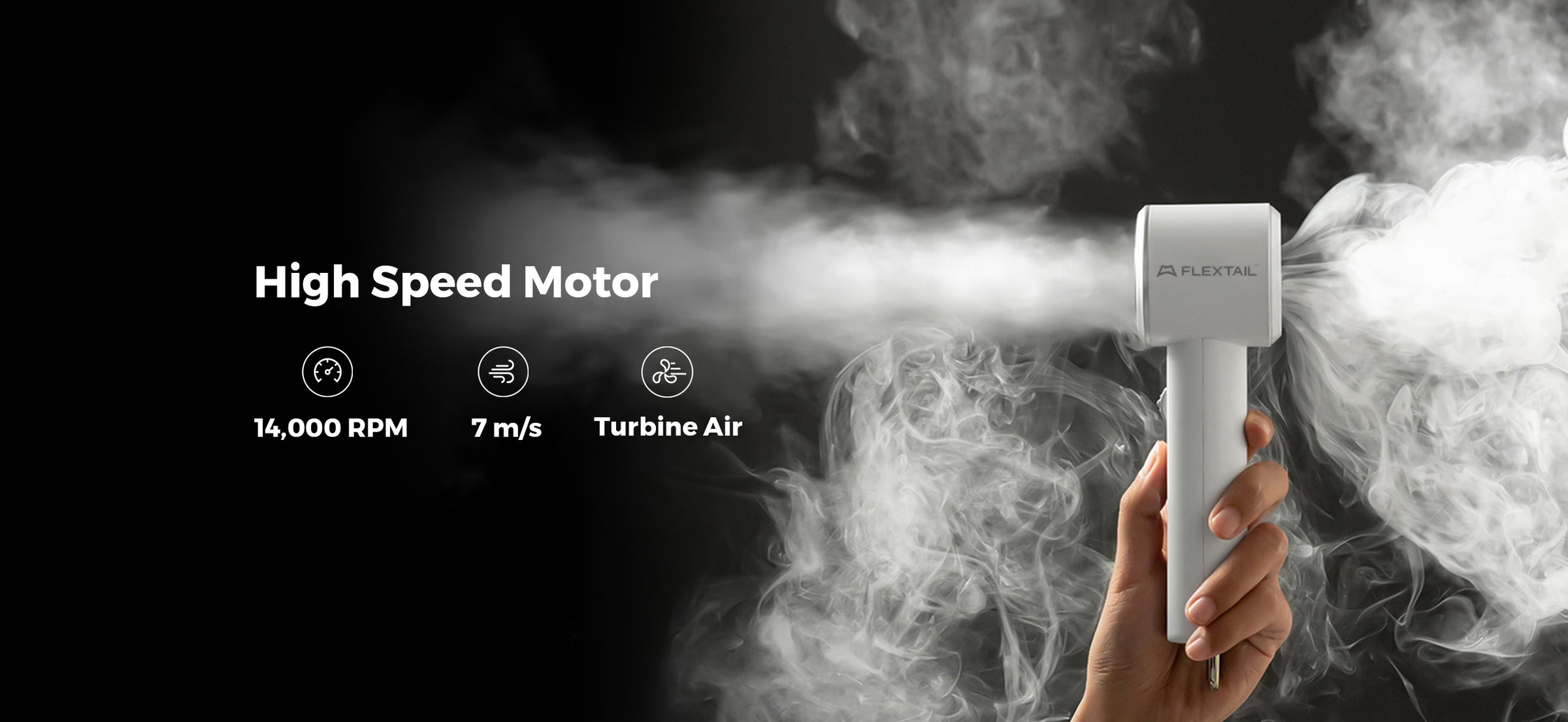 14,000 RPM Ultra High Speed Motor. Technology derived from high-speed blowers, High air velocity of 9m/s, cooling down 3 times faster.